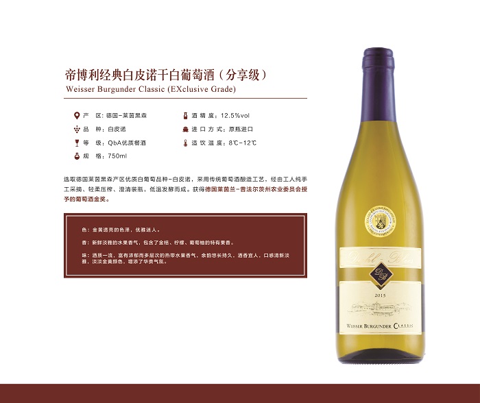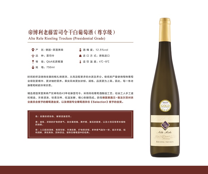 帝博利酒莊建于公元1579年,有著近五個(gè)世紀(jì)的葡萄酒釀造歷史,是德國(guó)目前為數(shù)不多的仍處于經(jīng)營(yíng)狀態(tài)中的百年世紀(jì)酒莊。自酒莊建立以來(lái),帝博利始終堅(jiān)持將“釀造世界級(jí)優(yōu)質(zhì)葡萄酒”作為自己的經(jīng)營(yíng)理念和發(fā)展方向,致力于打造能代表德國(guó)葡萄酒行業(yè)的龍頭酒莊,樹立德國(guó)葡萄酒行業(yè)標(biāo)準(zhǔn),塑造德國(guó)葡萄酒標(biāo)桿式品牌。